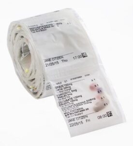 Each pouch is meticulously labeled with the resident’s name, date and day of the week, dosage time, medication names, strengths, quantities, and tablet descriptions. These sachets are stored inside the medication trolley, which optimizes space at nurses’ stations or treatment rooms and reduces the time spent shuttling medications back and forth during each medication round.